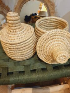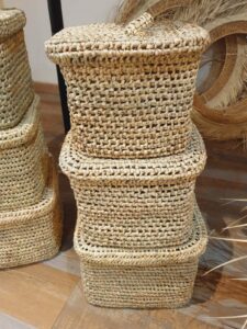 40,00 €RangementPanier avec anse cuir marron, tressée entièrement à la main avec de l’Osier. Ses franges en coton écru apportent un côté chic et bohème. Finition intérieure tissu avec possibilité de fermeture avec un lacet. Produit authentique et unique qui peut présenter des différences pour un même modèle. -