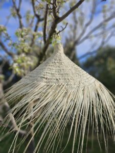 Suspension tressée entièrement à la main avec du Raphia. Ses franges mettent une touche d’exotisme à votre décoration et son tressage légèrement ajouré apportera une belle luminosité.